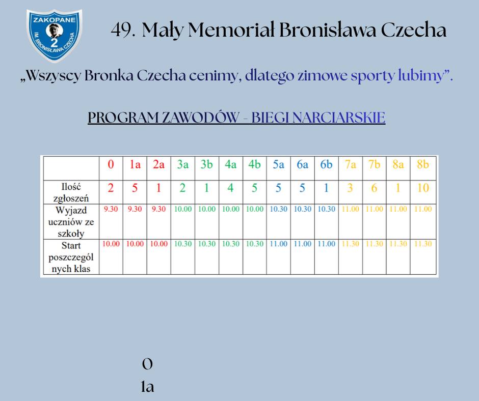 Już we wtorek 27 stycznia - korzystając z dobrej pogody , rozpoczynamy pierwsze w tym roku zmagania sportowe naszych uczniów w ramach 49 Małego Memoriału Bronisława Czecha.